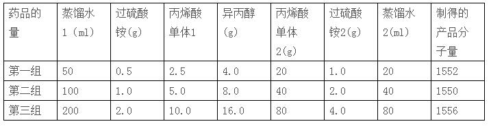 試劑:丙烯酸 ,CP;過硫酸銨 ,AR;氫氧化鈉 ,CP;丙醇 ,CP;去離子水。