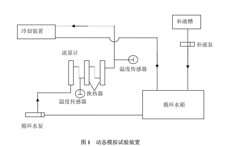 先在循環(huán)水箱中注入試驗用水,按加藥劑量加入試驗用阻垢劑,攪拌均勻;再在補液槽中加入已按加藥劑量配置的試驗用水;開啟動態(tài)模擬試驗裝置總電源開關(guān),開啟循環(huán)水泵,調(diào)節(jié)流量計閥門,使循環(huán)水流量為 1000L/h;流量穩(wěn)定后,開啟換熱器冷卻水閥門及換熱器加熱開關(guān);設(shè)定循環(huán)水箱溫度為