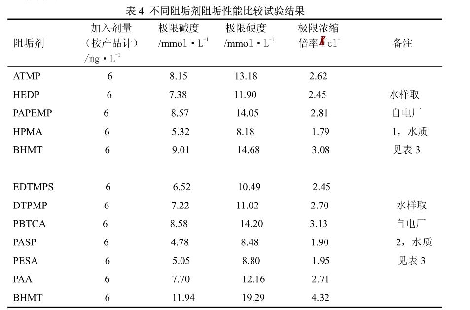 ① 所選用阻垢劑除 PAA 有效含量為 48%, HEDP 活性組分為 60%的產(chǎn)品外, 其他均為符合相關(guān)